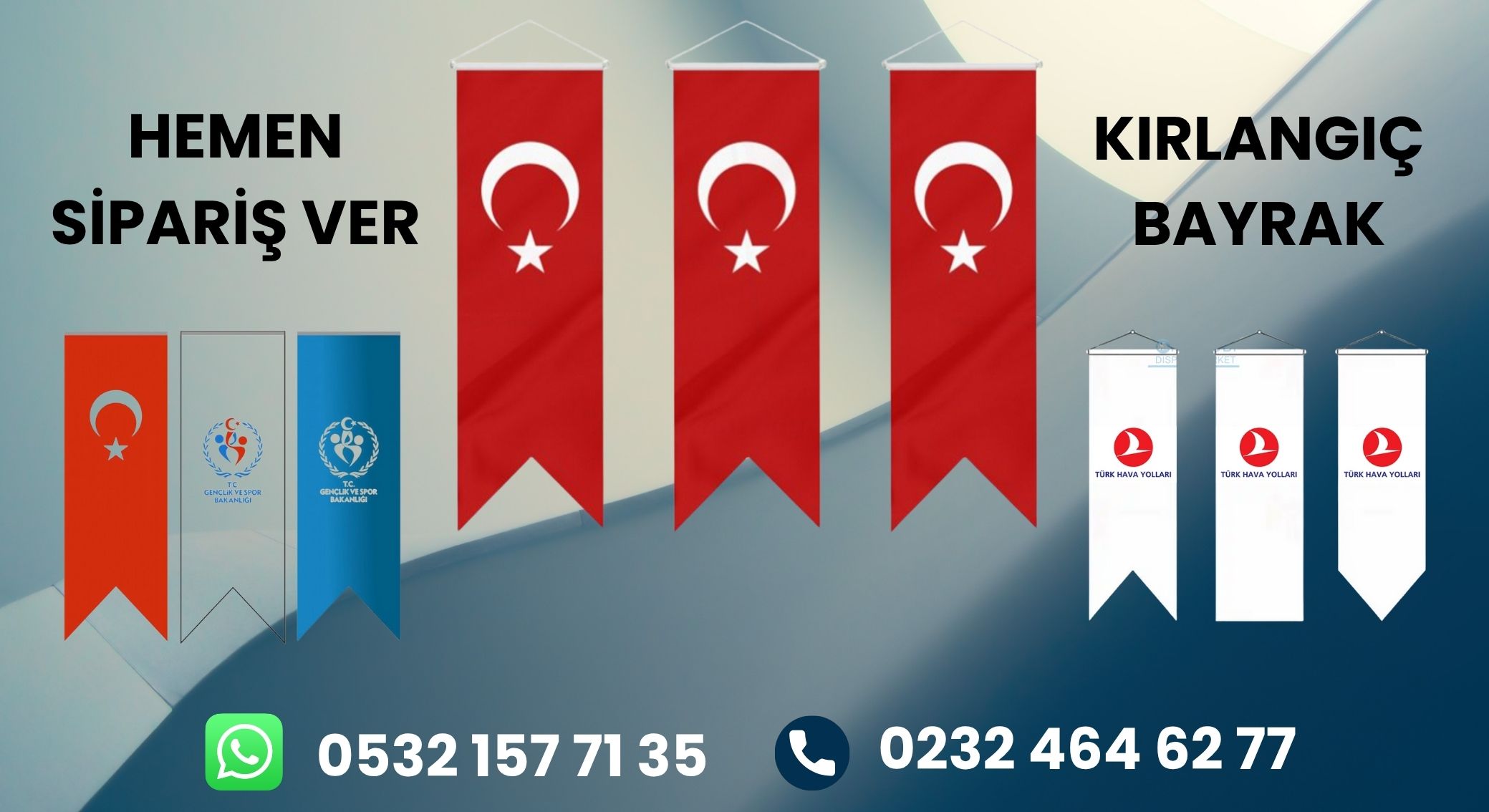 Kırlangıç bayrak, alt kısmı “V” şeklinde kesilmiş, yukarıdan aşağıya daralan formu ile dikkat çeken bir bayrak türüdür. Daha çok kurumsal tanıtım, etkinlik ve iç-dış mekân dekorasyonlarında kullanılır. Aşağıda en...