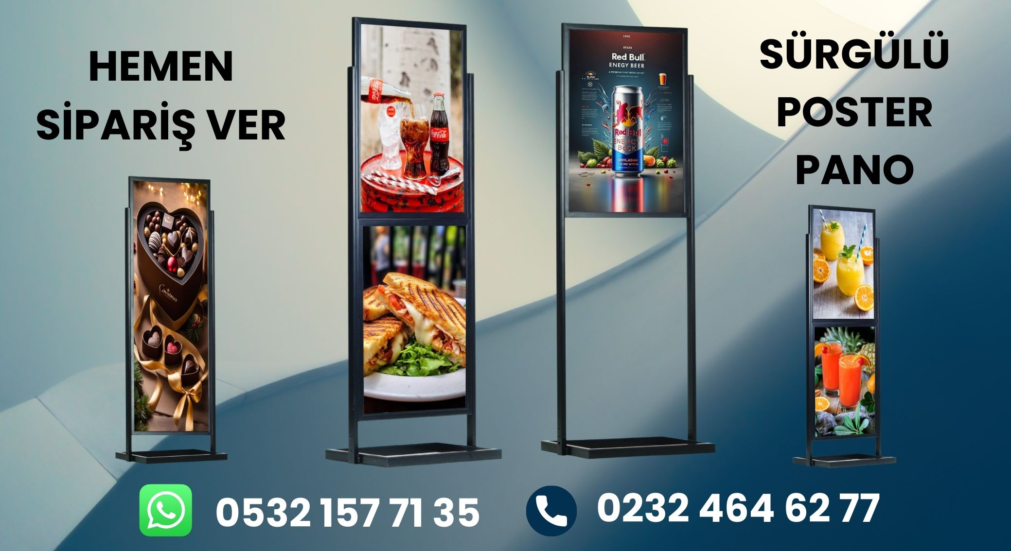 Alüminyum A Panolar kaldırım üzerinde bulunan işyerlerinin, yayaların dikkatini mağazaya çekmek amaçlı kullandıkları Kaldırım Reklam Panolarıdır. Alüminyum malzemeden üretilmiştir. Aç Kapa çerçeve kenarları sayesinde posterinizi kolayca takabilir ve değiştirebilirsiniz....
